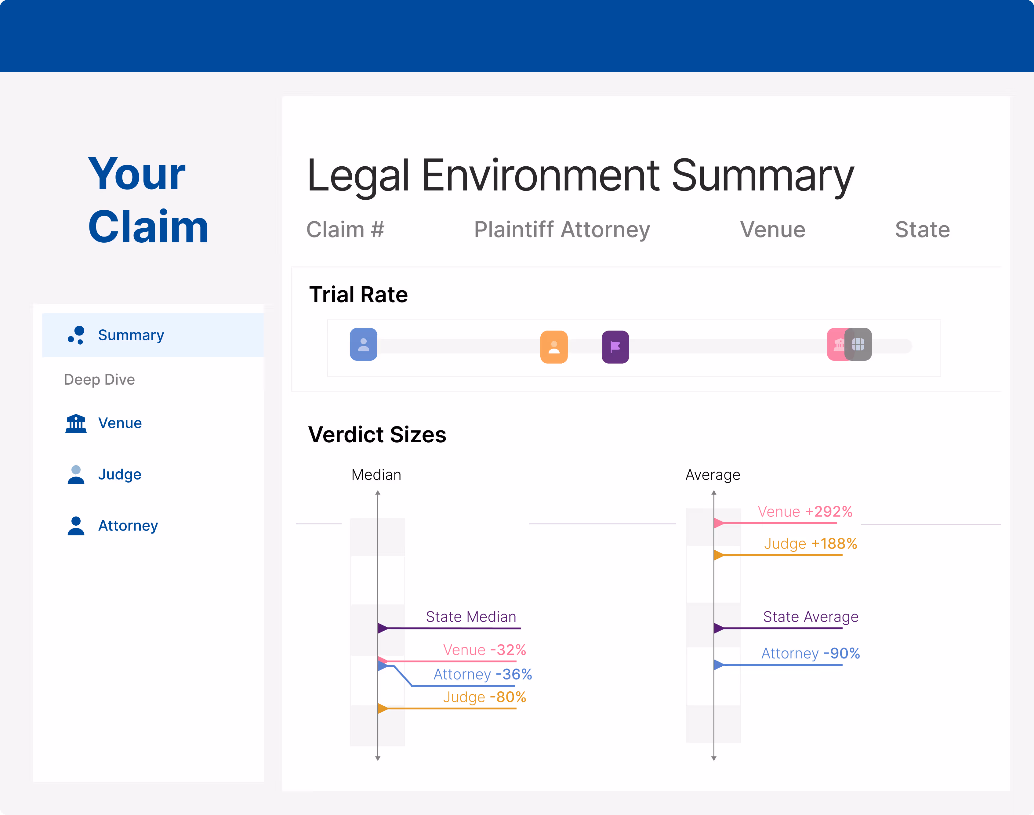 Analyzer gives defense teams data-driven insights on venues, attorneys, and judges—turning negotiations from opinion-based to evidence-based.